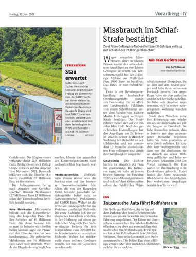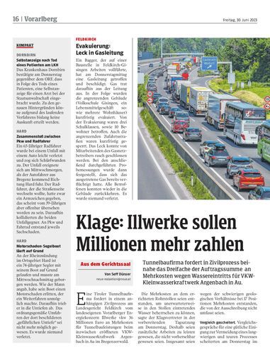 Tunnelbaufirma fordert in Zivilprozess beinahe das Dreifache der Auftragssumme an Mehrkosten wegen Wassereintritts für VKW-Kleinwasserkraftwerk Argenbach in Au.