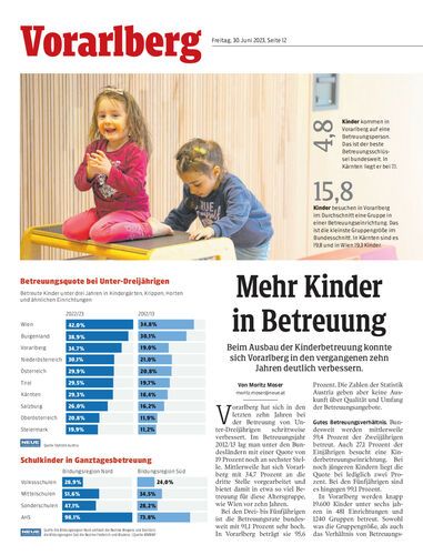 Beim Ausbau der Kinderbetreuung konnte sich Vorarlberg in den vergangenen zehn Jahren deutlich verbessern.