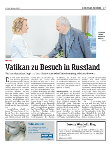Vatikan-Gesandter Zuppi traf umstrittene russische Kinderbeauftragte Lwowa-Belowa.