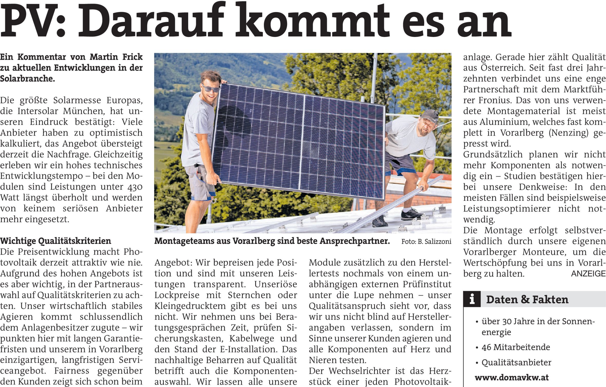 Fotovoltaik – ein Beitrag zur Energieautonomie Vorarlbergs. Mit den vielfältigen Förderungen können Fotovoltaikanlagen installiert werden, die einen wichtigen Beitrag zur Umwelt leisten und gleichzeitig Kosten senken.