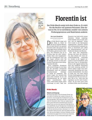 Der Pride Month neigt sich dem Ende zu. Er steht für die Rechte von queeren Personen. Eine davon ist Flo. Er ist nichtbinär, erzählt von seinem Findungsprozesss und Reaktionen anderer.