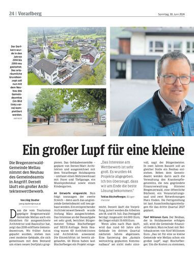 Die Bregenzerwald-Gemeinde Mellau nimmt den Neubau des Gemeindeamts in Angriff. Derzeit läuft ein großer Architektenwettbewerb.