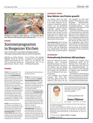 Vom 7. Jui bis zum 14. Juli stehen in Bregenz mehrere Führungen und gestaltete Messen auf dem Programm.