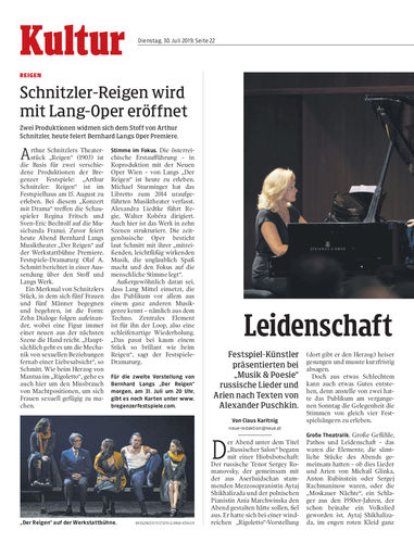 Zwei Produktionen widmen sich dem Stoff von Arthur Schnitzler, heute feiert Bernhard Langs Oper Premiere.