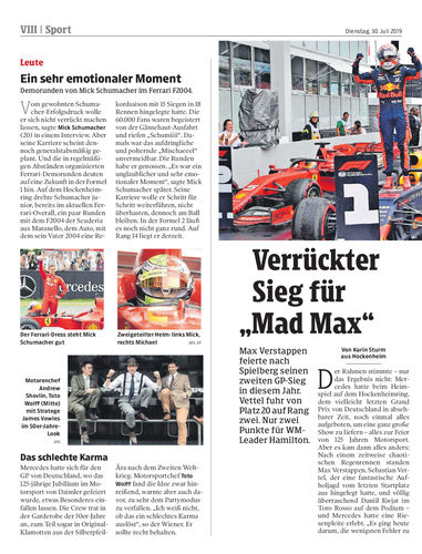 Max Verstappen feierte nach Spielberg seinen zweiten GP-Sieg in diesem Jahr. Vettel fuhr von Platz 20 auf Rang zwei. Nur zwei Punkte für WM-Leader Hamilton.
