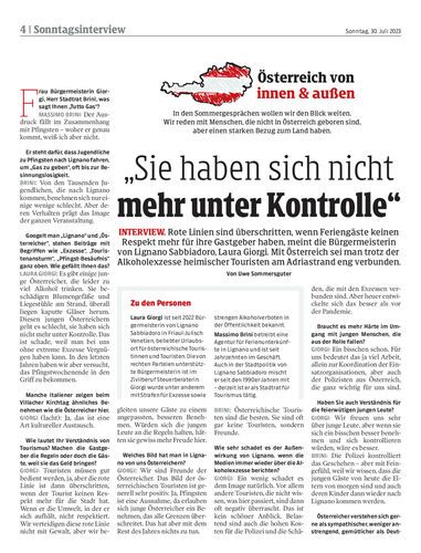 Interview. Rote Linien sind überschritten, wenn Feriengäste keinen Respekt mehr für ihre Gastgeber haben, meint die Bürgermeisterin von Lignano Sabbiadoro, Laura Giorgi. Mit Österreich sei man trotz der Alkoholexzesse heimischer Touristen am Adriastrand eng verbunden. Von Uwe Sommersguter