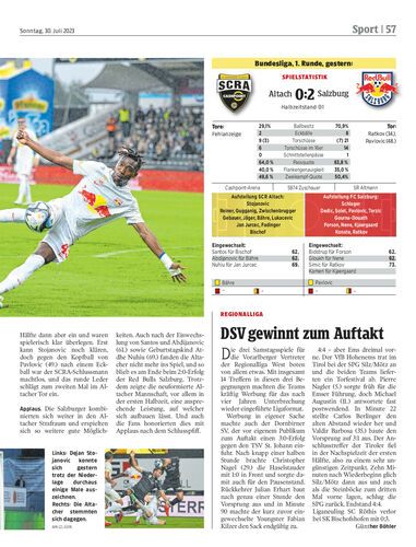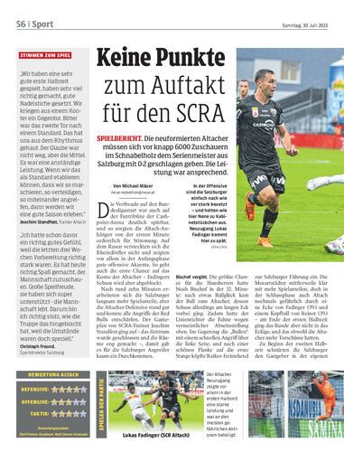 Spielbericht. Die neuformierten Altacher müssen sich vor knapp 6000 Zuschauern im Schnabelholz dem Serienmeister aus Salzburg mit 0:2 geschlagen geben. Die Leistung war ansprechend.