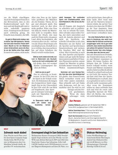 Ex-Tennisstar Andrea Petkovic, die u. a. als Botschafterin des WTA-Turniers in Hamburg tätig ist, über Nachwuchsprobleme und Ideen zur Verbesserung des Tennissports. Von Michael Schuen aus Hamburg