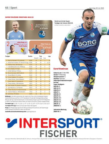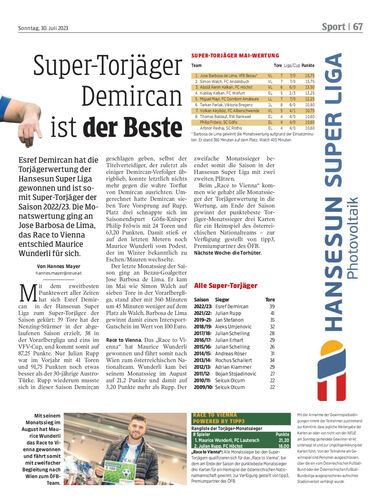 Esref Demircan hat die Torjägerwertung der Hansesun Super Liga gewonnen und ist somit Super-Torjäger der Saison 2022/23. Die Monatswertung ging an Jose Barbosa de Lima, das Race to Vienna entschied Maurice Wunderli für sich.