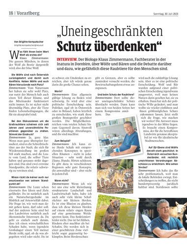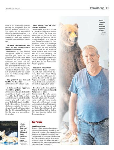 Interview. Der Biologe Klaus Zimmermann, Fachberater in der Inatura in Dornbirn, über Wölfe und Bären und die Debatte darüber und dazu, wie gefährlich diese Raubtiere für den Menschen sind.
