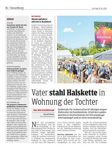 Geldstrafe für vorbestraften 57-Jährigen wegen Diebstahls im Familienkreis. Urteil des Landesgerichts in Strafverfahren mit Privatanklage wird bekämpft und ist nicht rechtskräftig.