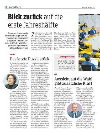 Teuerung, Strompreis, Personalmangel und Klimaproteste. Das waren einige der Themen, mit denen sich der Vorarlberger Landtag im ersten Halbjahr befasst hat.