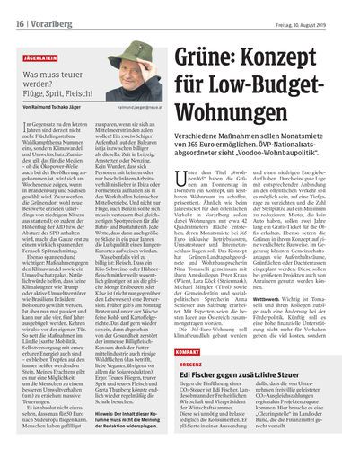 Wohnen. Preise für Grundstücke und Wohnungen in den letzten drei Jahren um 43 Prozent gestiegen. Landeshauptmann Wallner (ÖVP) präsentiert Studie zur Wohnbauförderung. Grüne wollen 365-Euro-Wohnungen. Seiten 14–17 Shutterstock