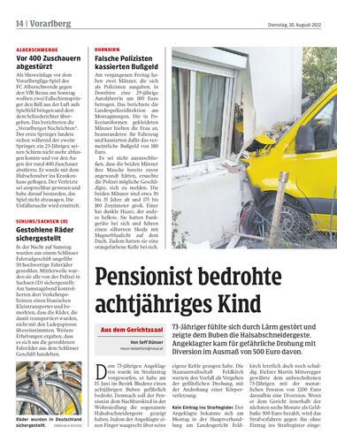 73-Jähriger fühlte sich durch Lärm gestört und zeigte dem Buben die Halsabschneidergeste. Angeklagter kam für gefährliche Drohung mit Diversion im Ausmaß von 500 Euro davon.