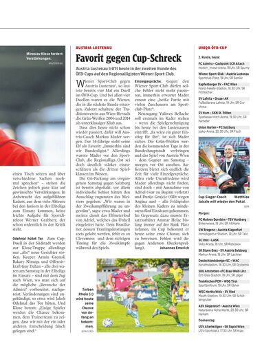 Austria Lustenau trifft heute in der zweiten Runde des ÖFB-Cups auf den Regionalligisten Wiener Sport-Club.