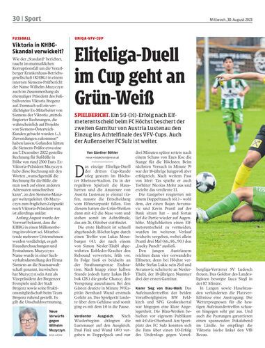 Spielbericht. Ein 5:3-(1:1)-Erfolg nach Elfmeterentscheid beim FC Höchst beschert der zweiten Garnitur von Austria Lustenau den Einzug ins Achtelfinale des VFV-Cups. Auch der Außenseiter FC Sulz ist weiter.