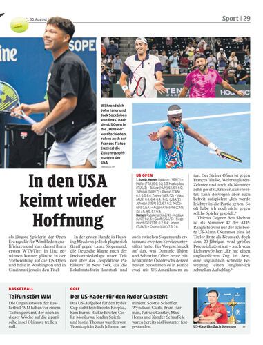 In der zweiten Runde in New York duellieren sich Dominic Thiem und Sebastian Ofner heute mit zwei US-Stars. Bei den Frauen ruhen die Hoffnungen der Amerikaner auf Coco Gauff.