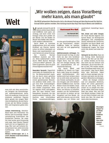 Die NEUE präsentiert Nachwuchs-Acts, die diesen Freitag auf dem Backwood Pre Roll im Conrad Sohm spielen werden. Den Anfang macht das Rap-Duo Saynt Bleek und Gob$hine.