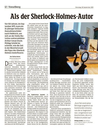 Vor 150 Jahren, im September 1875, kam ein 16-jähriger britischer Ausnahmeschüler nach Feldkirch, um sich an der Stella Matutina weiterzubilden: Arthur Conan Doyle. Philipp Schöbi beschreibt, wie die Zeit in der Montfortstadt die Figur des Sherlock Holmes beeinflusste.
