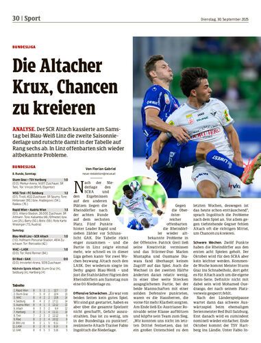 Analyse. Der SCR Altach kassierte am Samstag bei Blau-Weiß Linz die zweite Saisonniederlage und rutschte damit in der Tabelle auf Rang sechs ab. In Linz offenbarten sich wieder altbekannte Probleme.