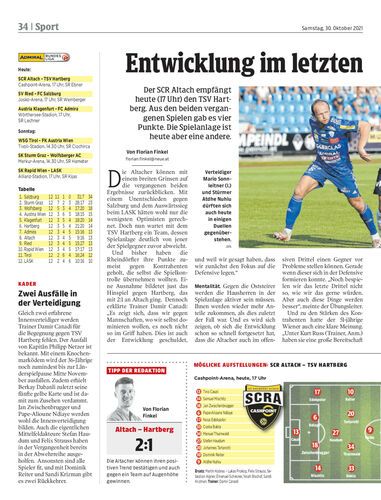 Der SCR Altach empfängt heute (17 Uhr) den TSV Hartberg. Aus den beiden vergangenen Spielen gab es vier Punkte. Die Spielanlage ist heute aber eine andere.