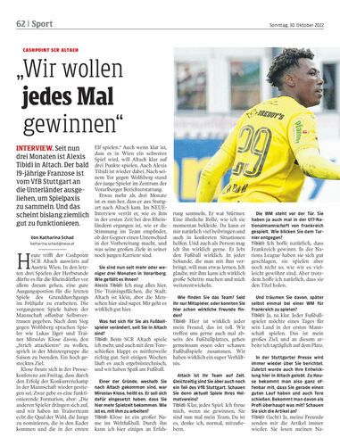 Interview. Seit nun drei Monaten ist Alexis Tibidi in Altach. Der bald 19-jährige Franzose ist vom VfB Stuttgart an die Unterländer ausgeliehen, um Spielpaxis zu sammeln. Und das scheint bislang ziemlich gut zu funktionieren.