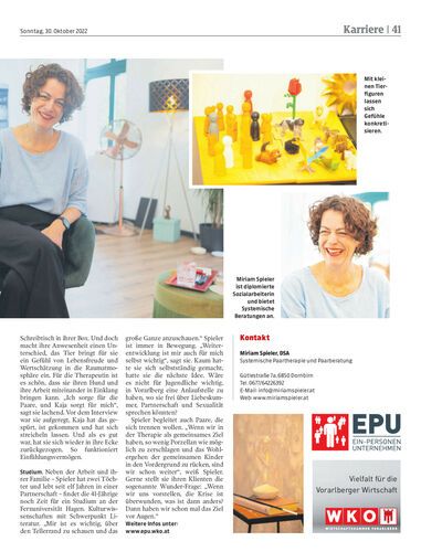 Die Dornbirnerin Miriam Spieler (41) ist Systemische Paartherapeutin in eigener Praxis in Dornbirn. Sie bringt Frauen und Männer wieder zusammen oder hilft bei der Trennung.