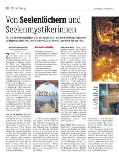 Mit der Seele beschäftigt sich ein neues Buch aus der Lesebuch-Reihe der Unartproduktion von Ulrich Gabriel: „Aller Seelen Lesebuch“ ist der Titel.