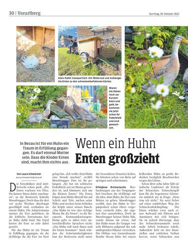 In Bezau ist für ein Huhn ein Traum in Erfüllung gegangen. Es darf einmal Mutter sein. Dass die Kinder Enten sind, macht ihm nichts aus.