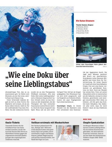 „Die Katze Eleonore“ feierte am Freitag Österreich-Premiere im Theater Kosmos, Bregenz. Ein Stück übers „Nicht-anders-können“.