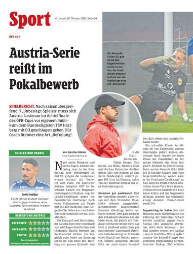 Spielbericht. Nach saisonübergreifend 17 „Unbesiegt-Spielen“ muss sich Austria Lustenau im Achtelfinale des ÖFB-Cups vor eigenem Publikum dem Bundesligisten TSV Hartberg mit 0:3 geschlagen geben. Für Coach Brenner eine Art „Befreiung“.