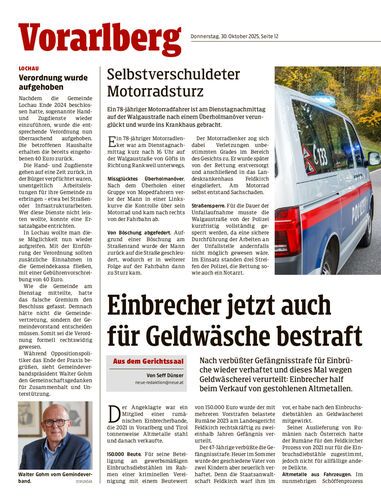 Ein 78-jähriger Motorradfahrer ist am Dienstagnachmittag auf der Walgaustraße nach einem Überholmanöver verunglückt und wurde ins Krankhaus gebracht.