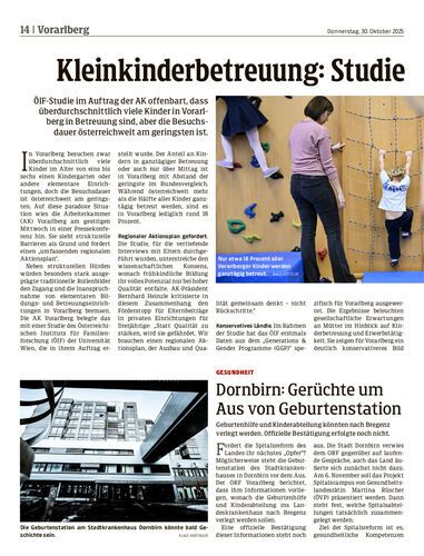 ÖIF-Studie im Auftrag der AK offenbart, dass überdurchschnittlich viele Kinder in Vorarl-berg in Betreuung sind, aber die Besuchsdauer österreichweit am geringsten ist.