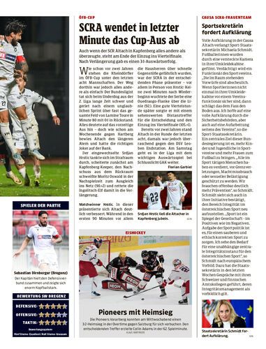 Auch wenn der SCR Altach in Kapfenberg alles andere als überzeugte, steht am Ende der Einzug ins Viertelfinale. Nach Verlängerung gab es einen 3:1-Auswärtserfolg.