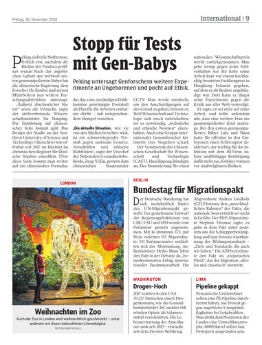 Peking untersagt Genforschern weitere Experimente an Ungeborenen und pocht auf Ethik.