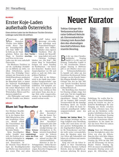 Tobias Gisinger löst Verlassenschaftskurator Gebhard Heinzle ab. Einvernehmliche Lösung zum Ausscheiden des ehemaligen Geschäftsführers Konstantin Deuring.