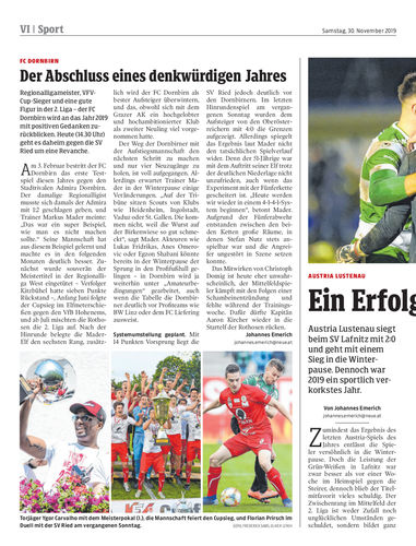 Regionalligameister, VFV-Cup-Sieger und eine gute Figur in der 2. Liga – der FC Dornbirn wird an das Jahr 2019 mit positiven Gedanken zurückblicken. Heute (14.30 Uhr) geht es daheim gegen die SV Ried um eine Revanche.
