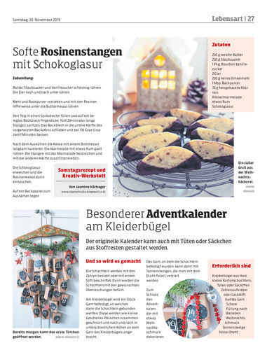 Der originelle Kalender kann auch mit Tüten oder Säckchen aus Stoffresten gestaltet werden.