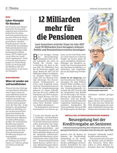 Laut Gutachten wird der Staat im Jahr 2027 rund 38 Milliarden Euro berappen müssen. Politik und Pensionistenvertreter beruhigen.
