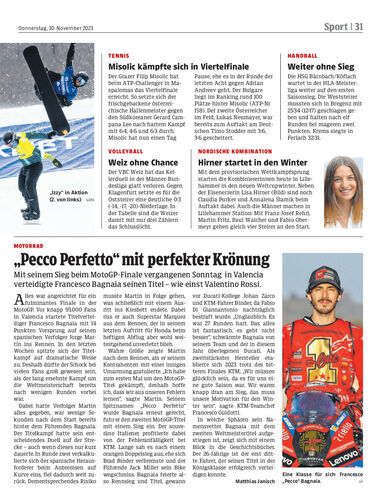 Mit seinem Sieg beim MotoGP-Finale vergangenen Sonntag in Valencia verteidigte Francesco Bagnaia seinen Titel – wie einst Valentino Rossi.