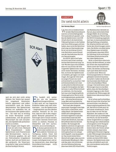 Im Skandal um die versteckten Kameras in der Kabine der Altacher Frauen-Bundesligamannschaft und den Wohnungen der Spielerinnen hat sich die Gemengelage völlig verändert. Eine Spielerin hat in einem anonym geführten Interview offenbart, dass sie und ihre Mannschaftskolleginnen sich als Opfer der heimlichen Videoaufnahmen von ihrem Verein SCR Altach und den Behörden allein gelassen fühlen. Ein Überblick der neuesten Entwicklungen und ein ausführliches Interview mit der Expertin für das Aufarbeiten von Missbrauchsfällen, Nicola Werdenigg.
