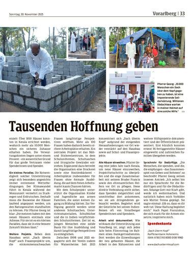 Was mit einem Versprechen begann, hat über 1850 Familien im indischen Kerala ein neues, sicheres Zuhause geschenkt. Der Göfner und Satteinser Pfarrer Georg Varghese Thaniyath über die erfolgreiche Hilfsorganisation „Dach überm Kopf“.