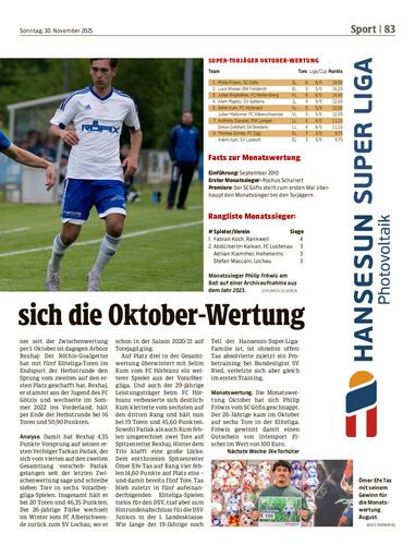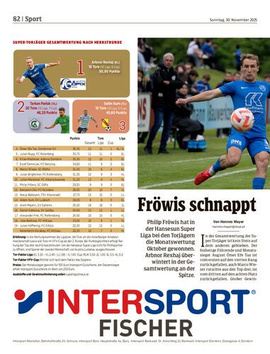 Philip Fröwis hat in der Hansesun Super Liga bei den Torjägern die Monatswertung Oktober gewonnen. Arbnor Rexhaj überwintert in der Gesamtwertung an der Spitze.