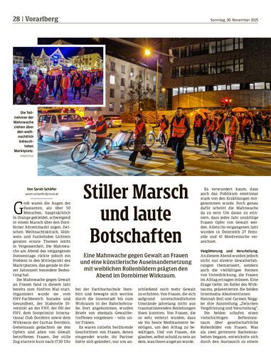 Eine Mahnwache gegen Gewalt an Frauen und eine künstlerische Auseinandersetzung mit weiblichen Rollenbildern prägten den Abend im Dornbirner Wirkraum.