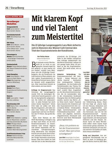 Die 22-jährige Langeneggerin Lara Mair sicherte sich in Diensten des Wiener Café Central den Titel der Staatsmeisterin der Konditoren.