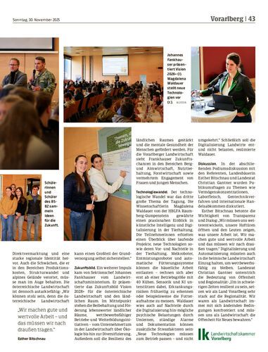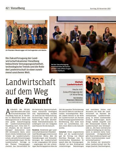 Die Zukunftstagung der Landwirtschaftskammer Vorarlberg beleuchtete Versorgungssicherheit, technologische Trends und die Rolle der Landwirtschaft in einer zunehmend unsicheren Welt.