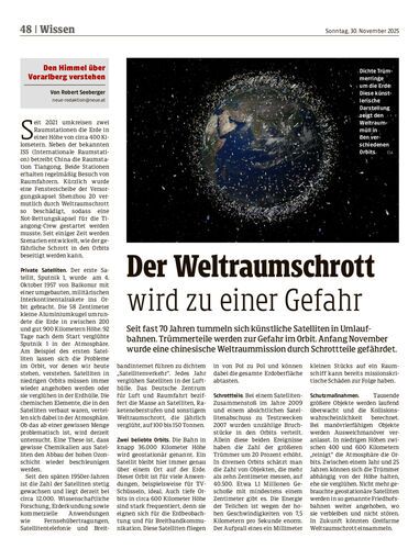 Seit fast 70 Jahren tummeln sich künstliche Satelliten in Umlaufbahnen. Trümmerteile werden zur Gefahr im Orbit. Anfang November wurde eine chinesische Weltraummission durch Schrottteile gefährdet.