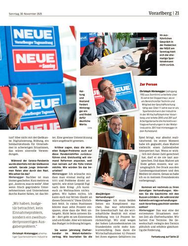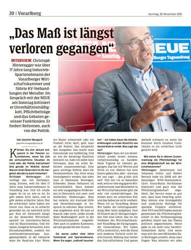 Interview. Christoph Hinteregger war über 17 Jahre lang Industrie-Spartenobmann der Vorarlberger Wirtschaftskammer und führte KV-Verhandlungen der Metaller. Im Gespräch mit der NEUE am Sonntag kritisiert er Unverhältnismäßigkeit, Pflichtbeiträge und das Gebaren gewisser Funktionäre. Er fordert Reformen, auch von der Politik.