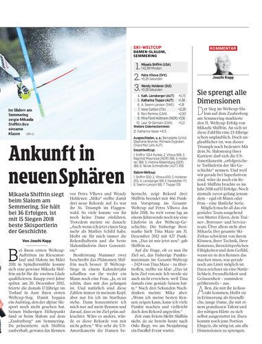 Mikaela Shiffrin siegt beim Slalom am Semmering. Sie hält bei 36 Erfolgen, ist mit 15 Siegen 2018 beste Skisportlerin der Geschichte.