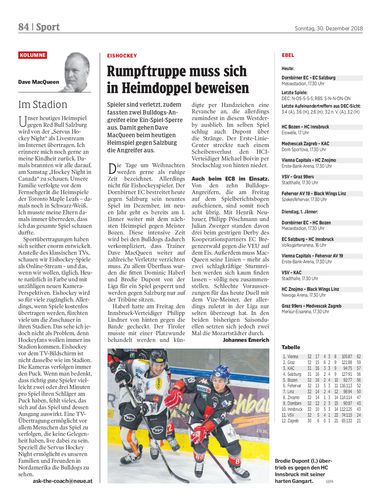 Spieler sind verletzt, zudem fassten zwei Bulldogs-Angreifer eine Ein-Spiel-Sperre aus. Damit gehen Dave MacQueen beim heutigen Heimspiel gegen Salzburg die Angreifer aus.